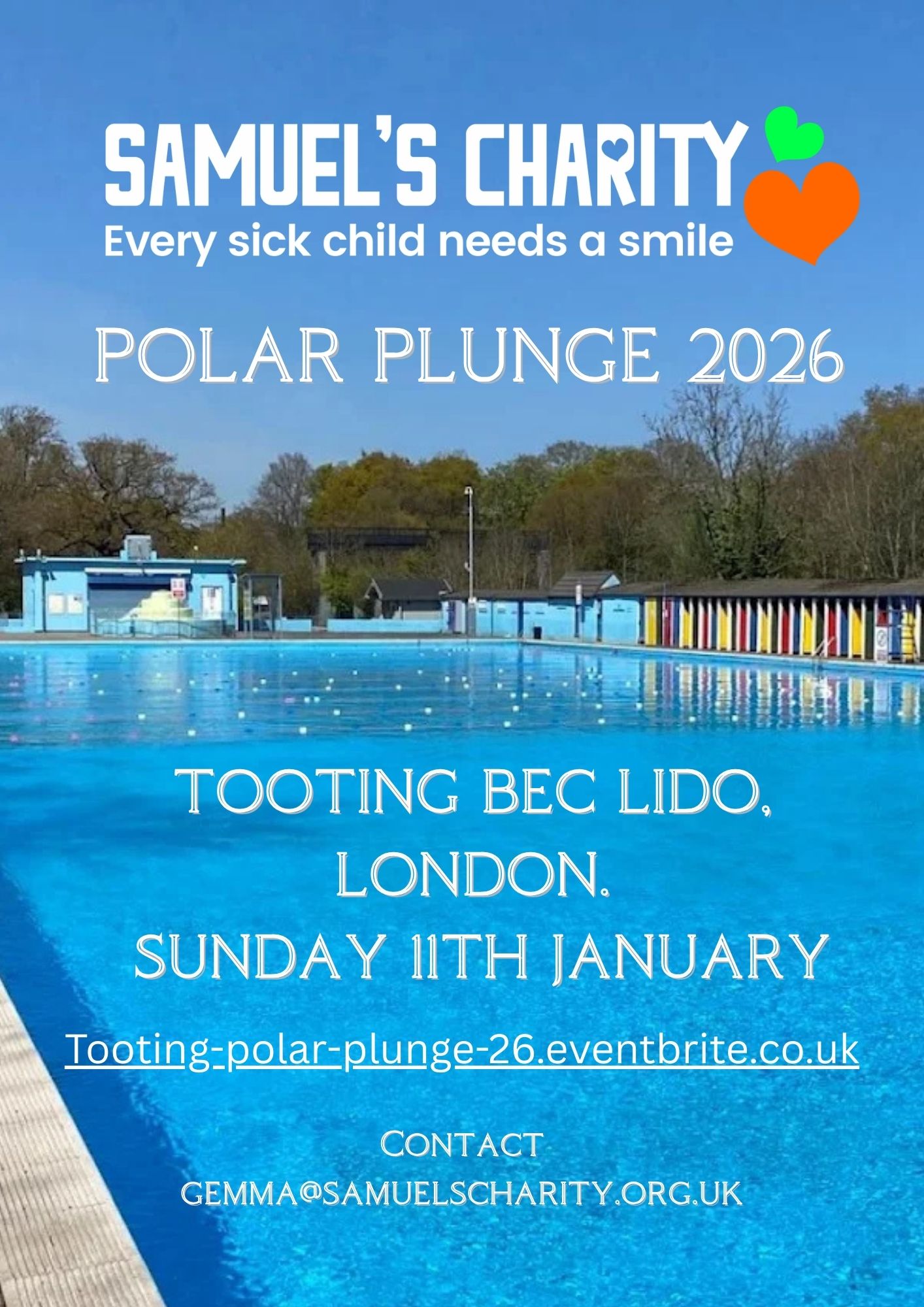 Join us for a Polar Plunge at Tooting Bec Lido! A fantastic and fun, if challenging, way to raise much needed equipment & support for the kids at St George’s Hospital.